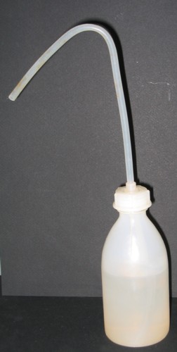 La pissette contient, en général, de l'eau distillée ou de l'eau permutée. On l'utilise lors de dilutions, de dissolutions ou pour rincer la verrerie. Il est fort mal venu de l'utiliser comme pistolet à eau.